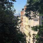 The descent leads to a former railway line, now transformed into a promenade and community gardens. After passing the neighborhood church, the tour will head towards other side streets and then the main boulevards.