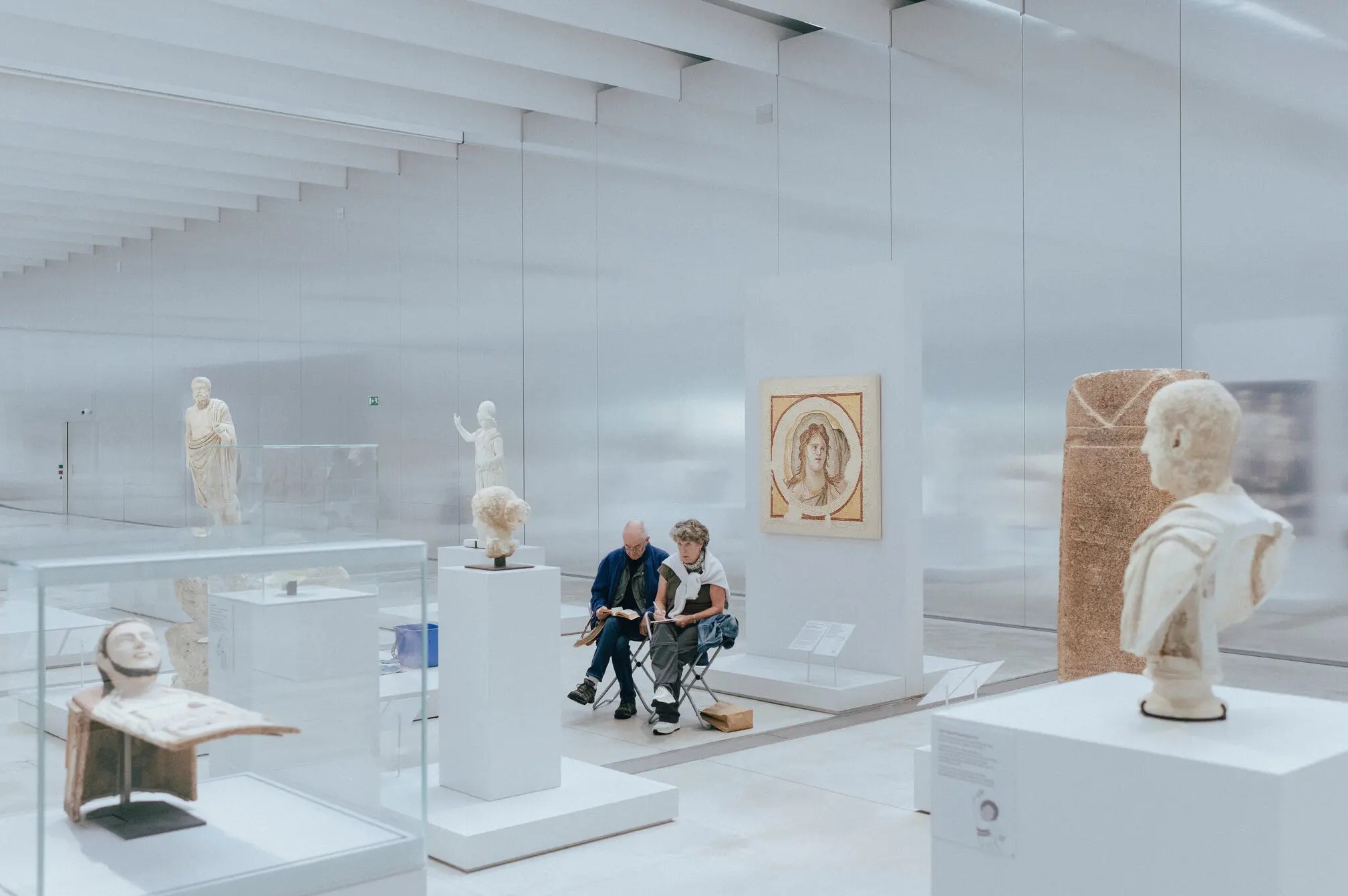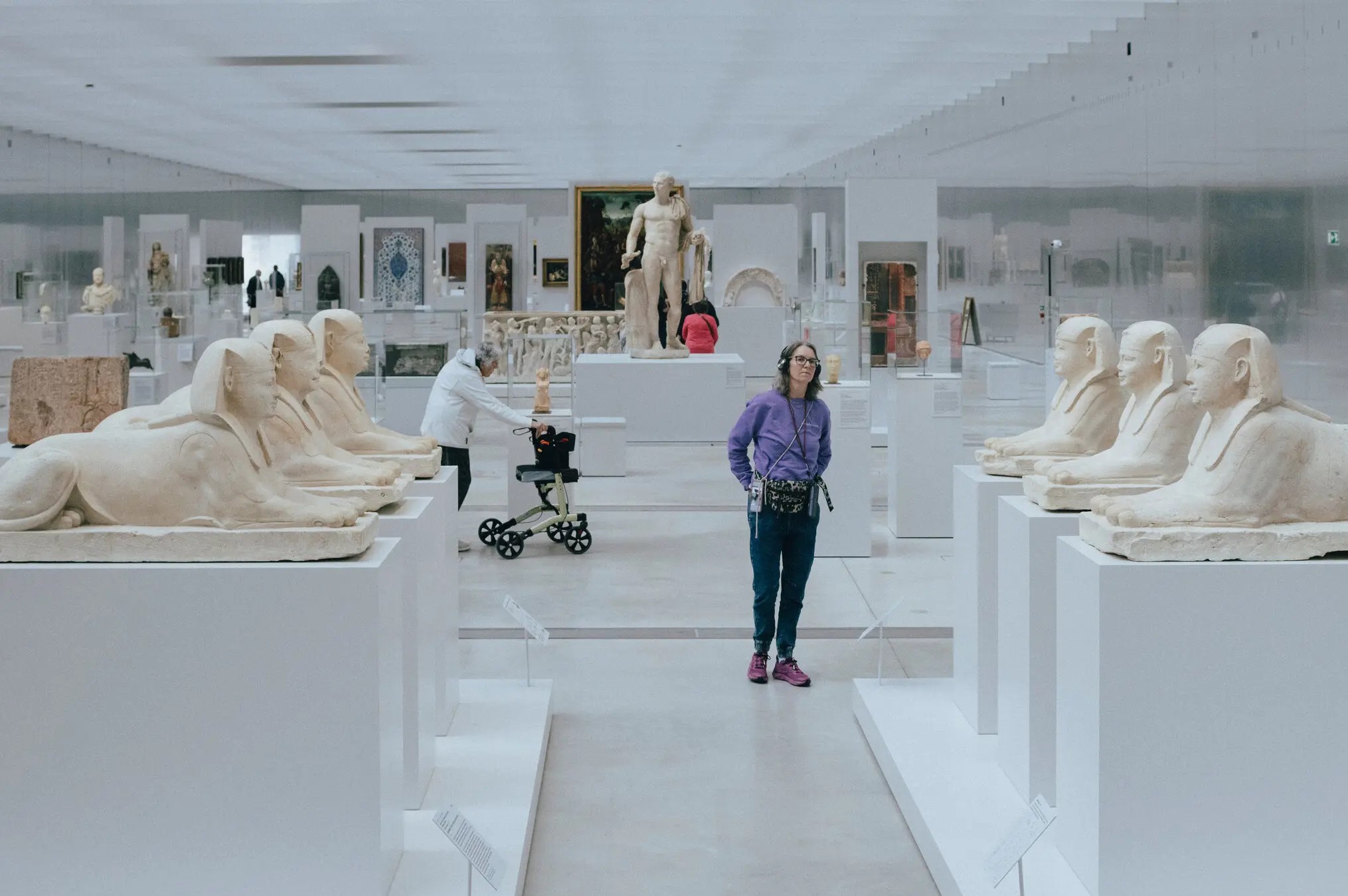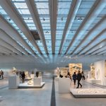 The heart of the museum, the Galerie du Temps (Gallery of Time), displays the permanent collection. The gallery, a 32,000-square-foot space with aluminum walls and pale stone floors, takes the form of a curving, moving, chronological “River of Time” that allows visitors to navigate the works as they please.